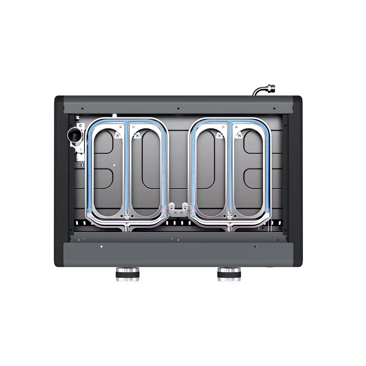 - 2x height adjustable feet at the back and 4x additional height adjustable pins under griddle, aid levelling the griddle and guiding grease evacuation